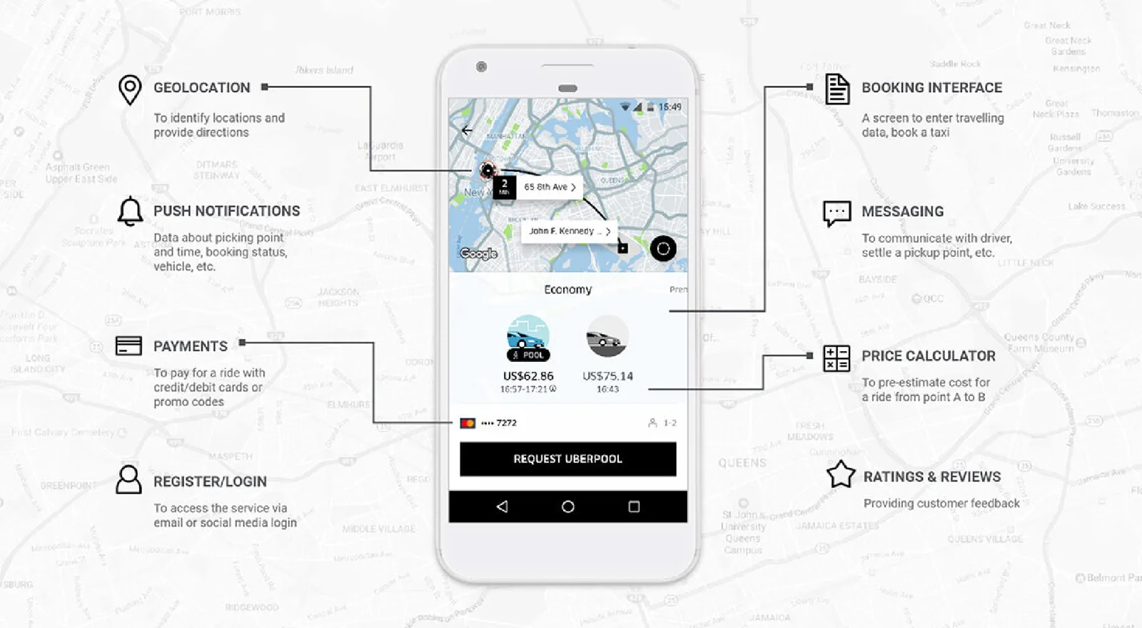 If anything that makes Uber the sole winner in the market, it’s the way the app operates. If you have ever used the Uber app (which we’re pretty sure you have) you’ll know that it takes only a few simple steps on the app to get to your desired location. The app keeps the process far efficient and plain sail. That is why if you want to develop an app like Uber, you need to first understand what these steps are: